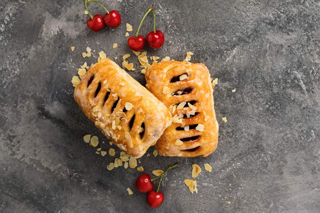 Der feine Plunderteig, gefüllt mit einer Kirschfüllung, bietet Dir ein fruchtiges Erlebnis.