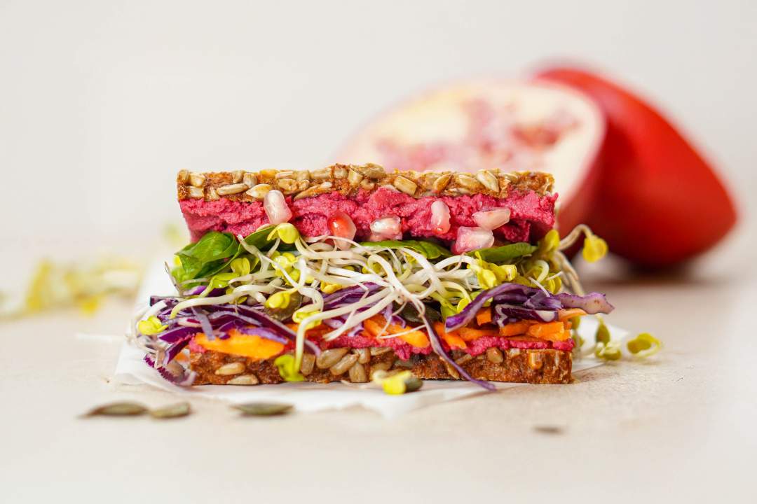 Unser Hummus Brot mit frischen Karottenstreifen und knackigen Radischensprossen ist der perfekte Snack für alle, die Wert auf Geschmack und Gesundheit legen. Die cremige Hummusbasis harmoniert ideal mit der süßen Frische der Karotten und der würzigen Note der Sprossen. Perfekt als leichtes Mittagessen, für unterwegs oder als bewusste Zwischenmahlzeit. Probiere diese pflanzlichen Genuss und tun dir selbst etwas Gutes.